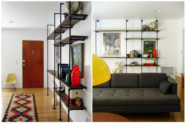 Форма цього стелажа дещо незвична, як ніби його планували під конкретні предмети. З картинами, статуетками і іншим вмістом виглядає круто. тут є список будматеріалів і розповідь про виготовлення.
