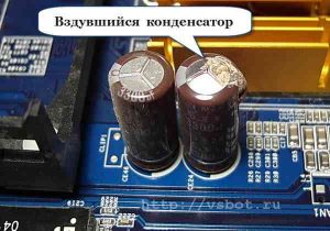 Зверніть увагу на зовнішній стан материнської плати, а точніше на конденсатори на ній. Чи немає серед них роздулися, які можуть стати причиною подібної несправності.