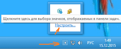 Перший спосіб найпростіший, натискаємо на стрілочку в системному треї і тиснете на пункт «Налаштувати».