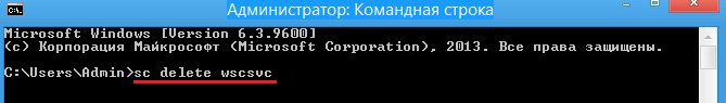 де sc delete - це команда видалення, а wscsvc ім'я служби Центру безпеки та натисніть клавішу Enter. Після цього вище перерахована служба буде повністю вилучена. Успіхів!