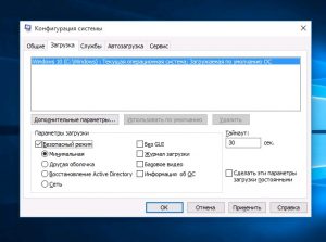 (Або комбінація клавіш WIN + R) і вписуємо в рядок команду msconfig. На моніторі одразу ж відображається меню конфігурації, в якому нам знадобиться закладка «Завантаження». Тут шукаємо «Параметри завантаження» і активуємо завантаження безпечного режиму.
