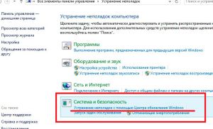 У меню, знайдіть категорію «Система і безпека» і в ній підпункт «Усунення неполадок за допомогою служби Windows Update». Натисніть на нього. Далі просто читайте підказки на екрані і виконуйте їх. Служба автоматично знайде неполадки і виправить їх.