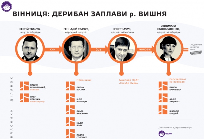 Версія для друку Депутат Верховної Ради від БПП Геннадій Ткачук, а також його родичі, наближені і підставні особи з порушенням закону отримали ділянки в заплаві річки Вишня у Вінниці.