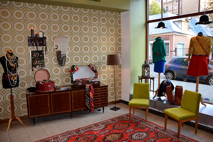 що пропонує одяг в вінтажному стилі. Незважаючи на те, що називає він себе вінтажним бутиком, справжнього винтажа тут мало. Це всього один куточок, де упереміш з довгими сукнями висять замшеві куртки, екстравагантні сукні і забавний червоний трикотажний комбінезон. Решта - одяг, яку ще пару сезонів тому можна було купити в торгових центрах.