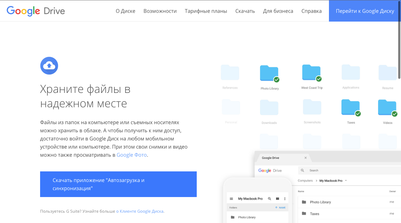 У гугл є чудовий інструмент "Автозавантаження і синхронізація", це нова версія програми для роботи з диском, через яку досить зручно робити резервні копії. Також дуже зручно резервувати дані з камер / карт пам'яті і флешок.