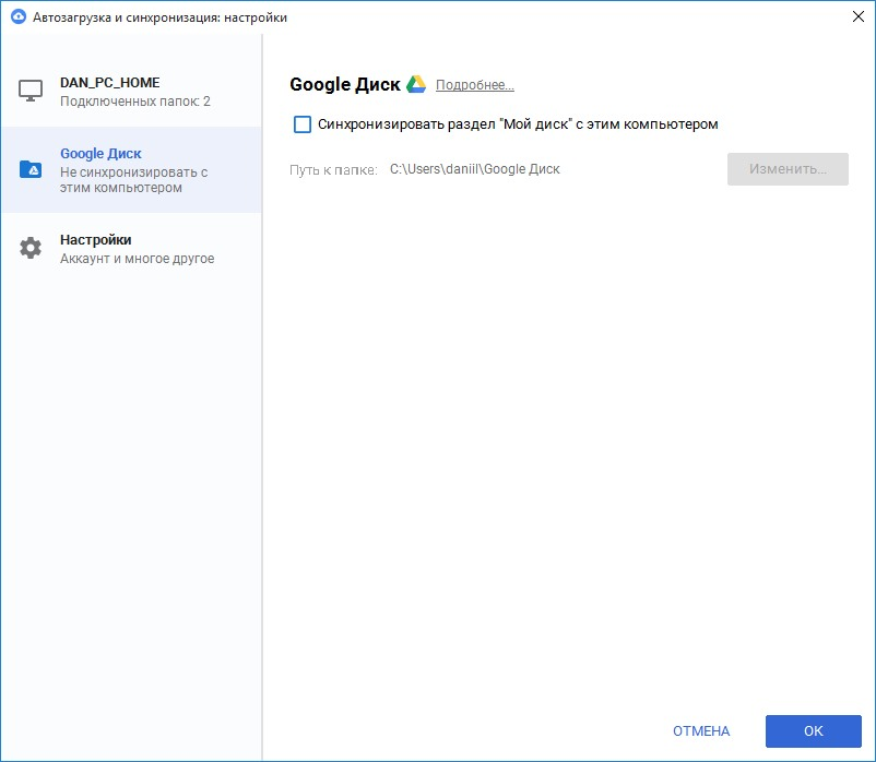 Перша вкладка відповідає за резервну копію папок з Вашого комп'ютера на Google Drive.