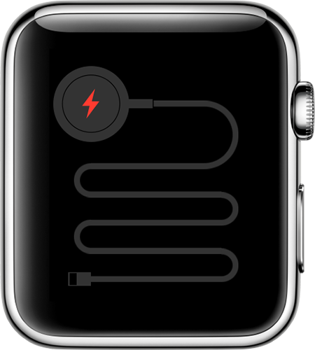 - Спробуйте використовувати інший кабель для зарядки Apple Watch з магнітним кріпленням і інший блок живлення USB. Якщо Apple Watch розряджені, підключіть їх до зарядного пристрою і зачекайте кілька хвилин, поки не з'явиться значок