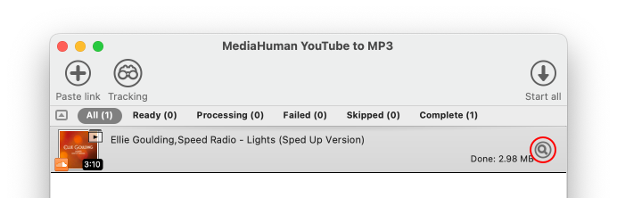 Залишилося тільки натиснути кнопку Запустити і програма почне завантажувати обраний трек. Якщо список містить кілька треків, то можна натиснути кнопку Запустити всі.