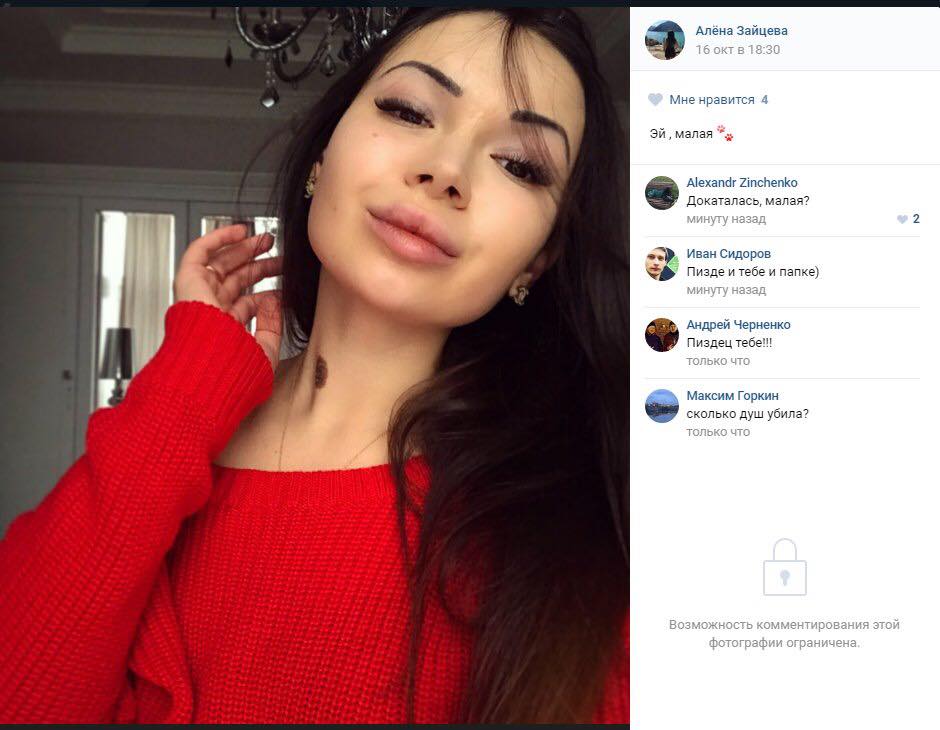 Варто відзначити, що скріншот зі сторінки ВКонтакте Зайцевої встигли зробити до того, як вона видалила свій профіль.