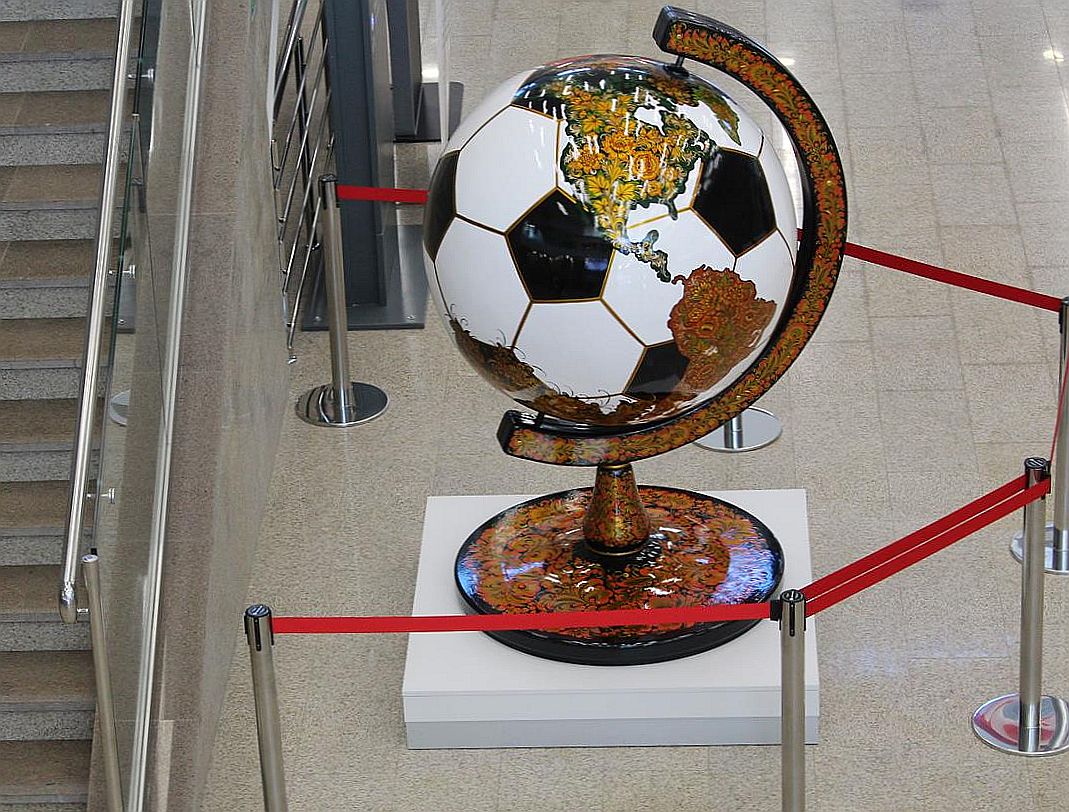Перше, що бачать пасажири, входячи в будівлю вокзалу - гігантський футбольний м'яч з хохломской розписом. Його доставили сюди з Семенівського художнього музею. Незвичайний експонат буде прикрашати фойє до закінчення чемпіонату світу, щоб гості мундіалю змогли сфотографуватися біля нього.