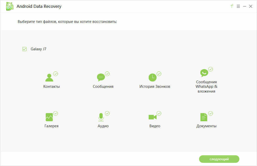 Виберіть типи файлів, які ви хочете відсканувати, коли з'єднання буде завершено. Потім натисніть «Далі». Програмне забезпечення сканує ваш пристрій.