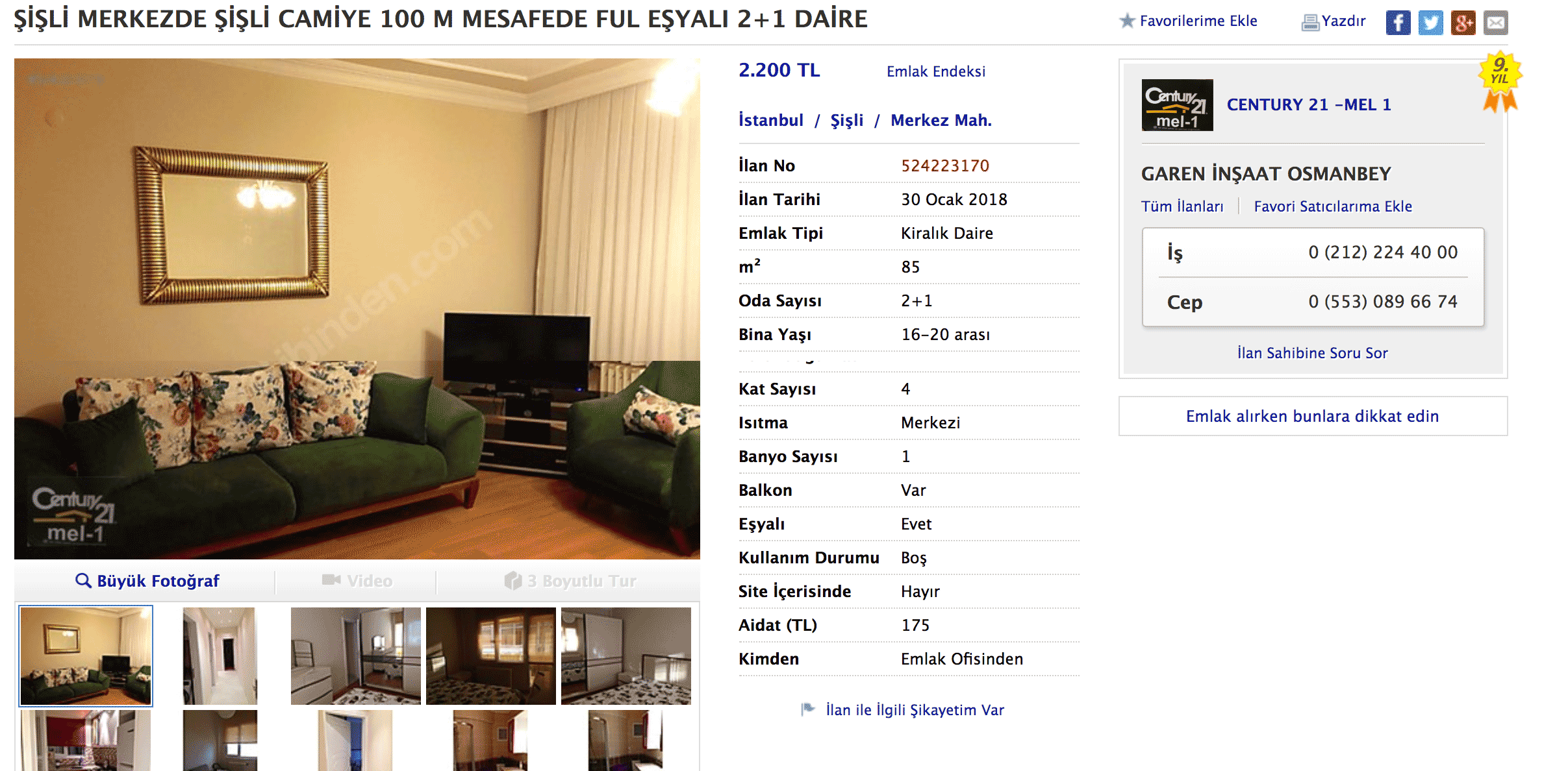 Зняти квартиру в Стамбулі можна самому або через рієлтора. Велика база є на сайті «Сахібінден». Тут стане в нагоді знання турецької мови або говорить по-турецьки місцевий житель, особливо на етапі укладення контракту.