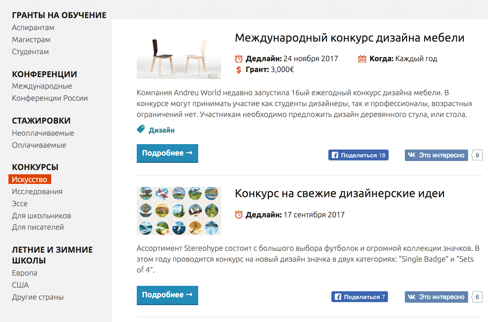 Конкурси в галузі мистецтва на сайті «Грантіст»