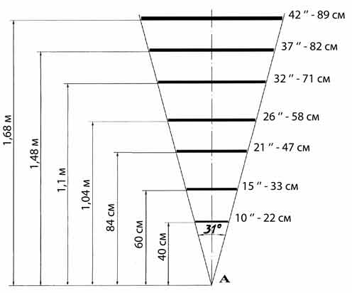Очі - це найважливіший інструмент фотографа, а монітор їх головний ворог. Для того щоб очі втомлювалися якомога менше, кут охоплення для них повинен укладатися в ширину монітора, щоб зіниці залишалися нерухомими. Якщо монітор ширше кута охоплення, очі будуть рухатися, а значить втомлюватися (рис.2).