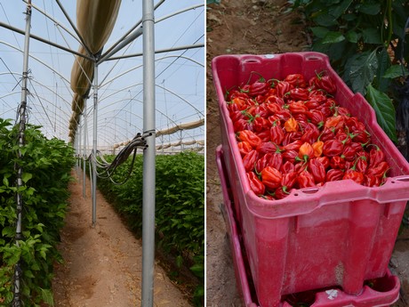 Після висадки рослин теплиці накривають пластиковими мережами. Мережі відображають частину сонячної радіації і захищають рослини від спеки. Власники теплиць поливають рослини в рамках наданої квоти на використання води. Збирання врожаю закінчується в середині травня-початку червня. Рослини видаляють з нетхауса, мережі на його стінах піднімають, обробляють грунт і висаджують інші культури до тих пір, поки знову не підійде сезон гострого перцю.
