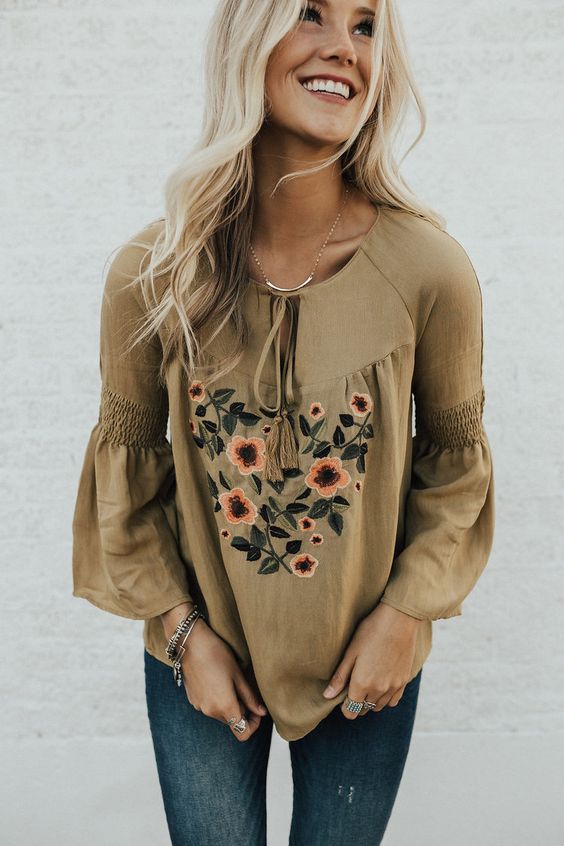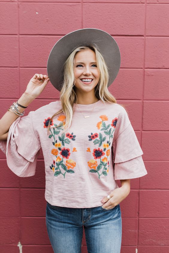 Не менш ефектно виглядають джинси з вишивкою. Яскраві брюки добре поєднуються з відкритою взуттям і вільними блузами. Також зверни увагу на спідницю з вишивкою. У 2018 році вибирай довжину як максі, так і міді спідниці, виходячи зі свого стилю.